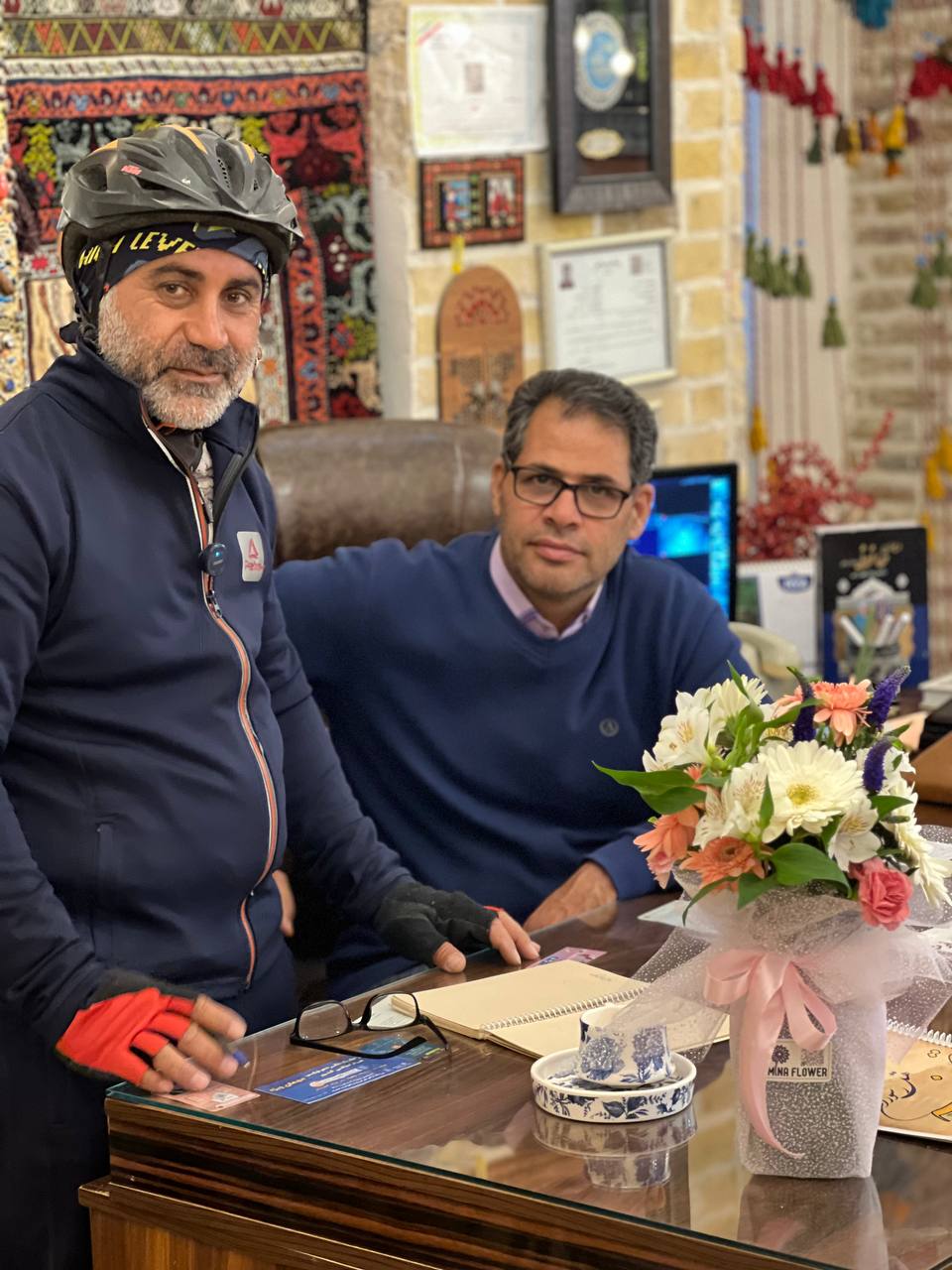 ((آقای محمد رضا کرمانی مدیر اقامتگاه بوم گردی تهمینه و مهندس موسوی در دفتر اقامتگاه ))